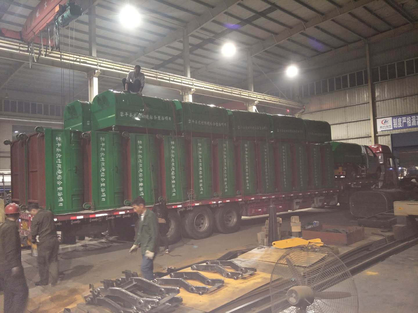 次交货,大批量开始交货,共46台垃圾车和307个垃圾箱,每天发车
