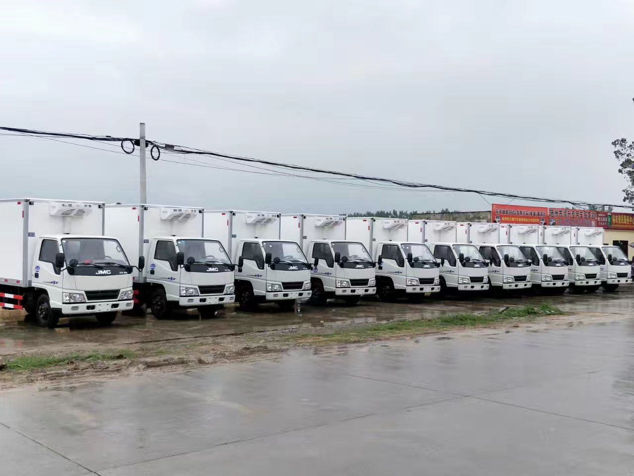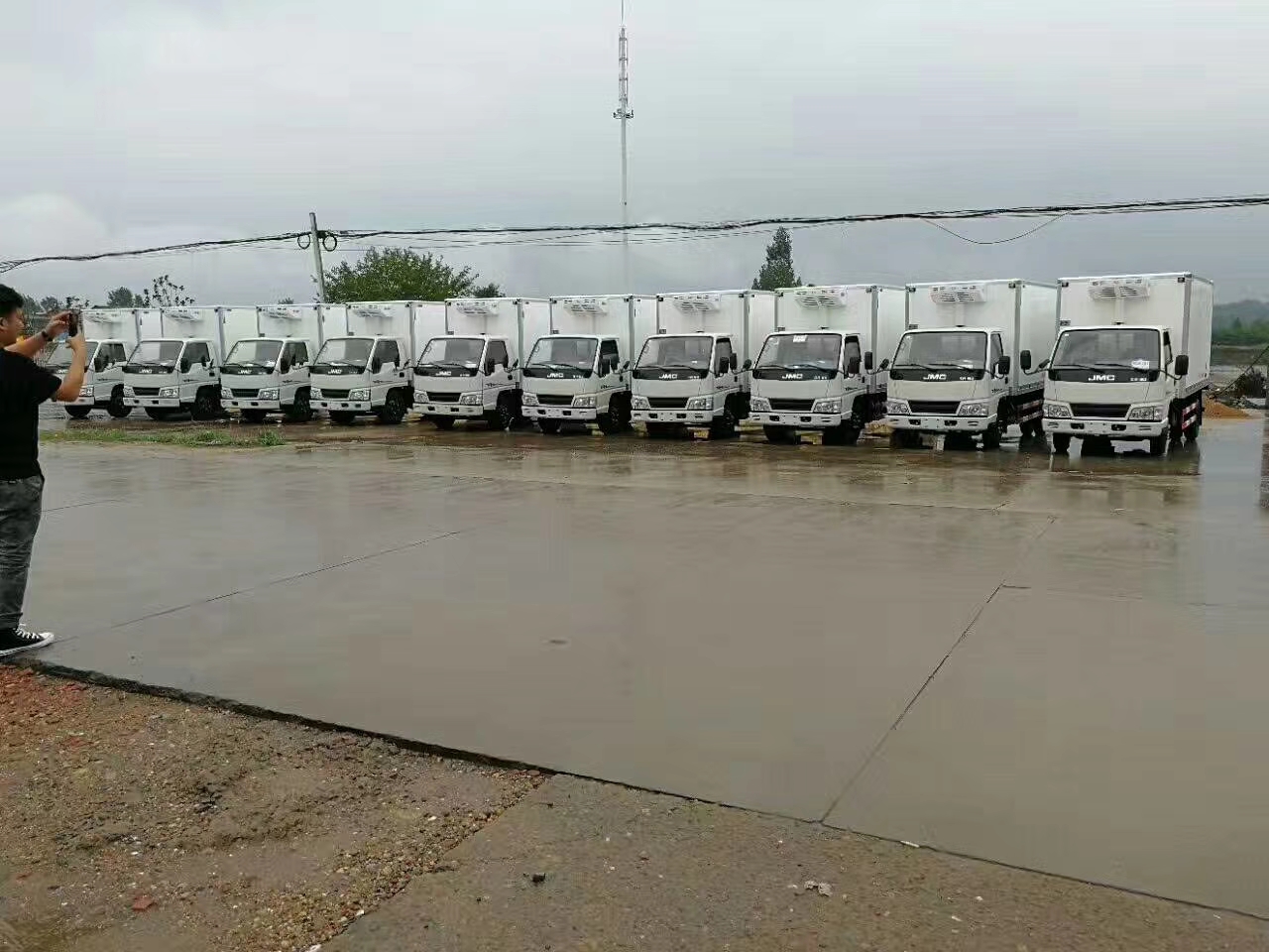 东莞某运输公司采购28台江铃冷藏车,该车采用江铃国五底盘,100马力发动机,5档变速箱,配-15度美国进口冷王冷藏机组,厢内配肉钩,铝合金地板带通风槽,温湿度记录仪,客户试车后非常满意!